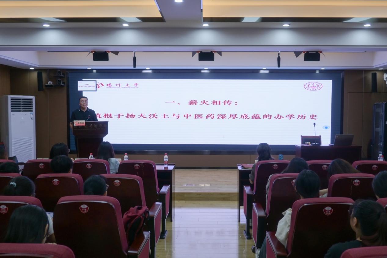 讲座上,颜丙春院长首先作主题报告。他从薪火相传,守正创新,砥砺前行三个方面系统阐述了医学部及学院的发展历程、学院的特色优势与发展愿景,描绘了中医药事业的广阔前景,从“心怀大爱、苦练内功、勇于探索、坚定自信”四个方面勉励全体新生立志成为新时代中医药事业的可靠接班人。